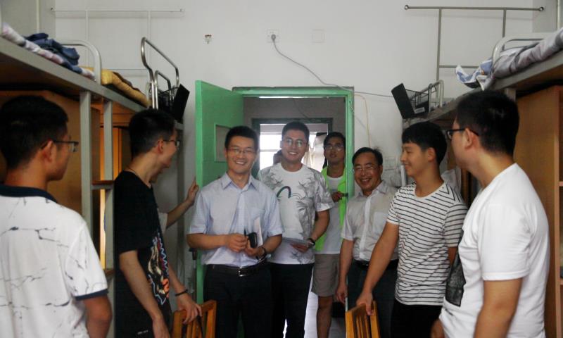 为了进一步做好新生入学教育工作,帮助新生适应大学生活,9月2日下午,学院领导闫峻、乔家君、翟秋敏、孔云峰、潘少奇及全体辅导员前往宿舍,看望2018级本、硕、博新生,为新同学送去关怀与温暖。