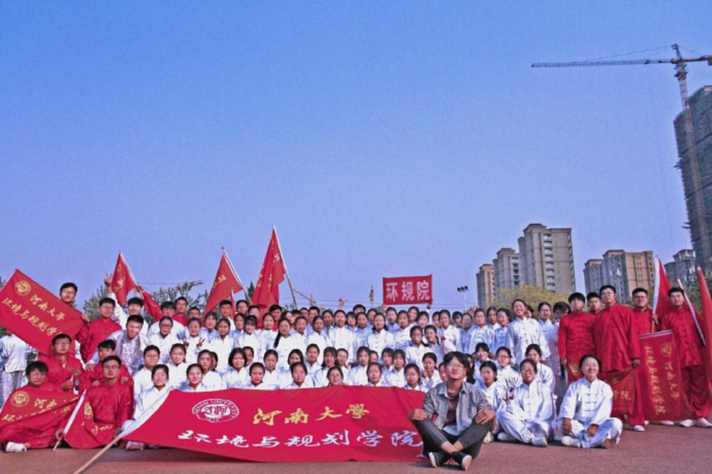 在开幕式上,校党委副书记张宝明致辞,他表示,太极拳发源于河南,是中华武术文化的瑰宝。练习太极拳,不仅可以提高我们健康体魄,对于社会凝聚力的增强也具有重要意义。随后伴随着激昂的国歌,太极拳比赛正式开始。我院研究生代表队的出场别出心裁,首先旗队率先登场,他们用青春的力量挥动着环规大旗浩浩荡荡的出现在操场中央,接下来,两条蛟龙从操场的的斜对角蜿蜒前进,两队相望由圆形变成方形,逐渐散开。我院研究生代表队以优雅高贵的拳姿,高水平的表演吸引了在场观众的目光,一招白鹤亮翅动作神韵兼备,招式虚实分明,全校师生也报以最热烈的掌声和加油声。最终我院代表队以90.78的成绩荣获本次金明校区太极拳比赛一等奖。