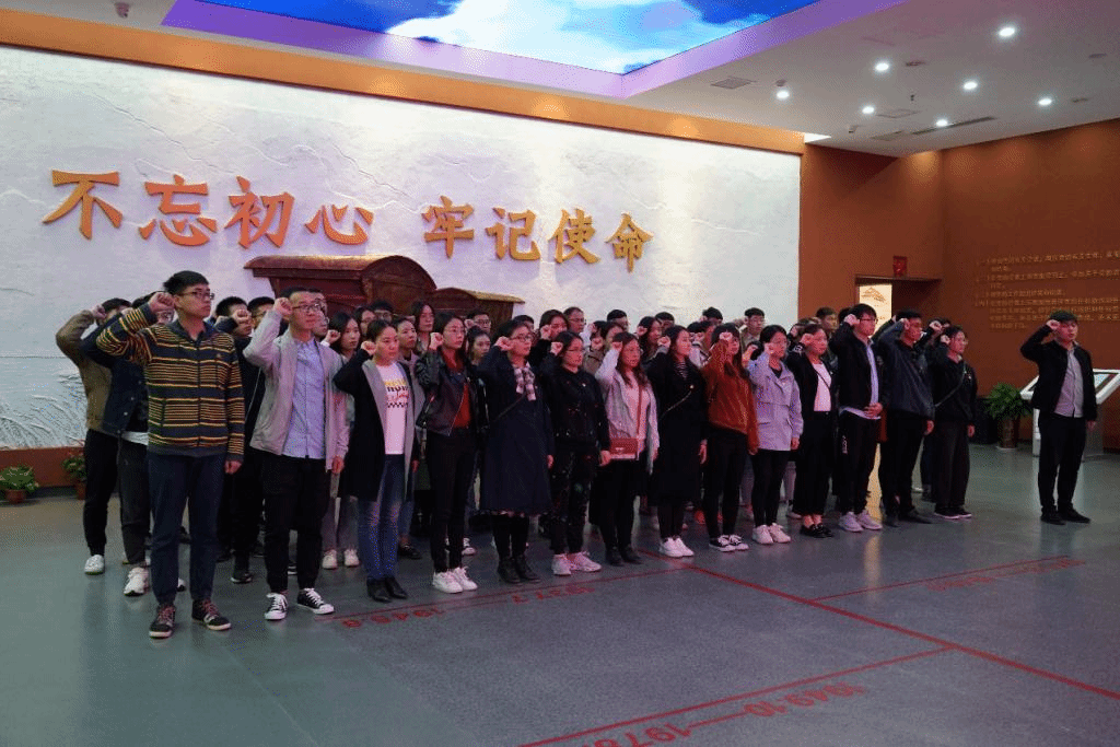 一个支部就是一个堡垒,一名党员就是一面旗帜。参观学习结束后,党员一行来到宣誓厅,面前的党旗和大家胸前的党徽,相映生辉。在何伟纯同志领誓下,同志们举起右拳,重温了入党誓词,铿锵有力的宣誓声响彻大厅,这是“不忘初心、牢记使命”的赤胆忠诚和庄严承诺。宣誓毕,党员同志们在共产党员承诺书上签名。
