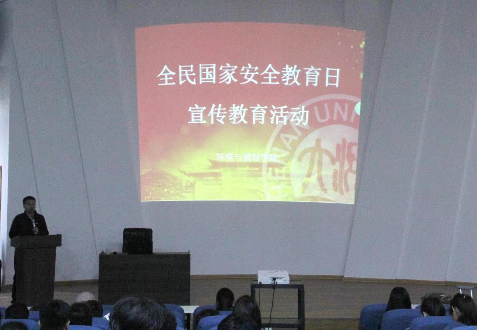 国安才能国治,治国必先治安。2021年是中国共产党成立100周年,是“十四五”规划的开局之年,在第六个全民国家安全教育日到来之际,环境与规划学院积极响应国家号召,结合党史学习教育,于4月13日中午在锥形报告厅面向学院学生开展全民国家安全教育日宣传讲座。本次活动由学院党委副书记徐小军主持。