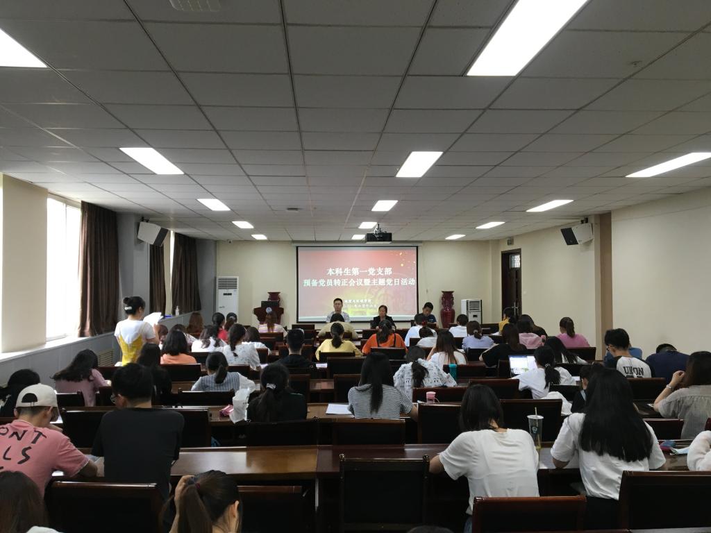 6月17日,地理与环境学院本科生第一党支部在学院二楼报告厅召开支部预备党员转正大会,会议由本科生第一党支部书记宋永鹏主持,组织委员王艾萍、宣传委员时振钦、本科生第一党支部全体预备党员参会。