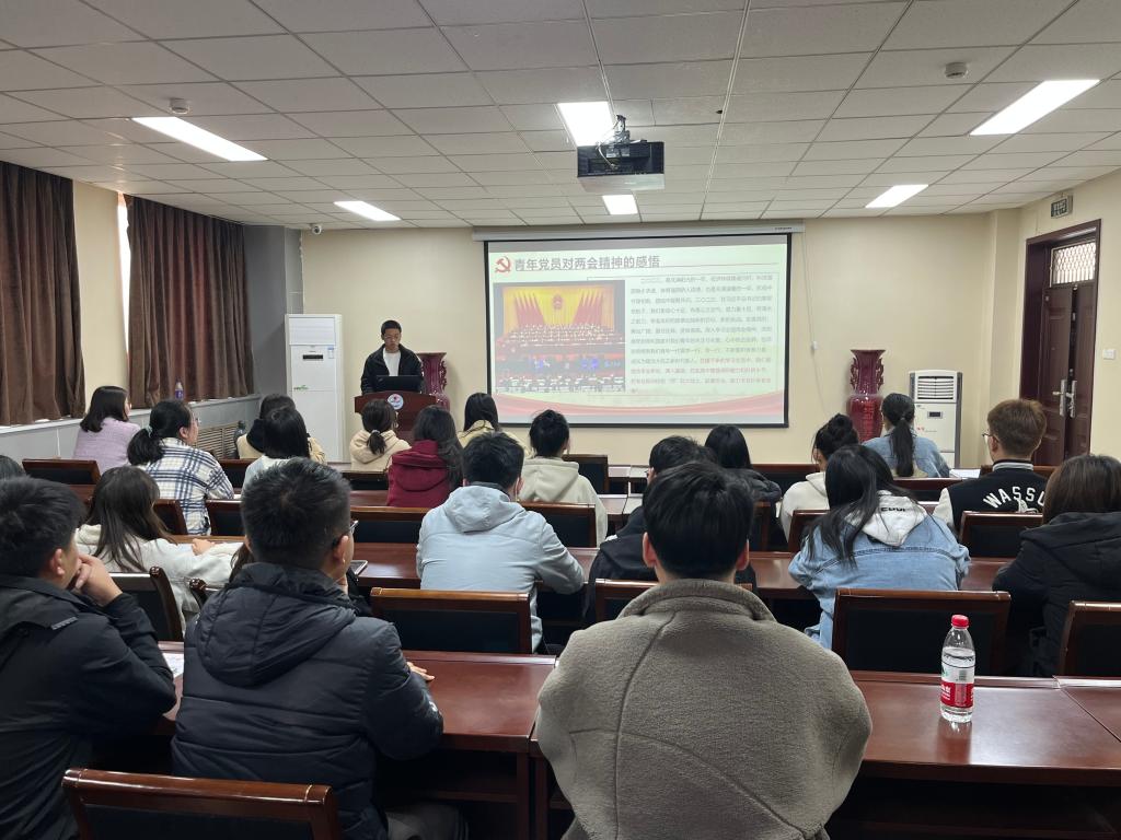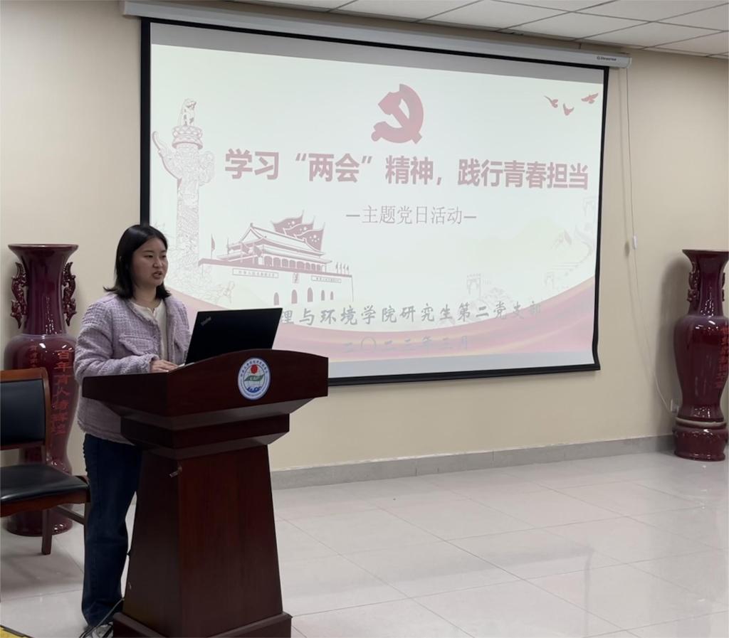 为深入学习宣传贯彻习近平总书记在“两会”期间的重要讲话精神和全国两会精神,以高质量党建引领发展,3月25日,研究生第二党支部于学院二楼报告厅开展“学习两会精神,践行青春担当”主题党日活动,会议由支部书记陆蓉主持。