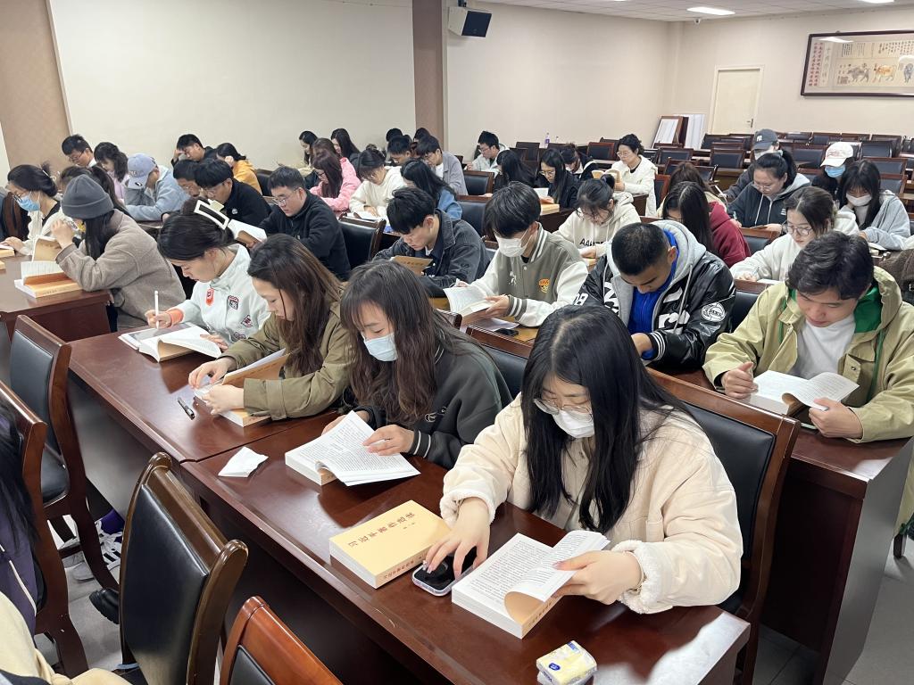 为深入学习贯彻习近平新时代中国特色社会主义思想,不断强化理论武装,研究生第二党支部与研究生第五党支部联合开展的“感悟思想伟力,奋力开拓进取”主题党日活动以第28个世界读书日为契机,以《习近平著作选读》为读书会书目,于4月23日在学院二楼报告厅进行,活动由研究生第二党支部书记陆蓉主持。