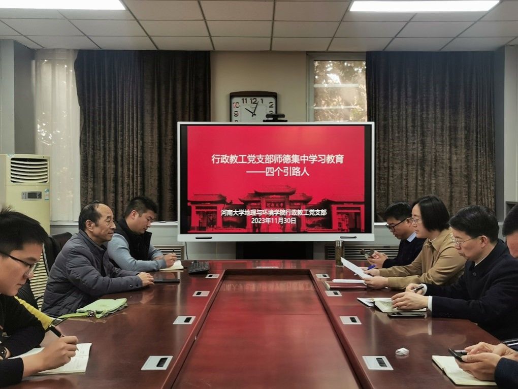 地理与环境学院关于持续开展师德集中学习教育的实施方案》和支部在集中学习教育工作中的安排。她带领全体同志共同学习了习近平总书记关于做“四有”好教师和做好学生“引路人”的讲话精神和《教育部关于高校教师是的失范行为处理的指导意见》。随后,党员同志们积极发言,热烈讨论,从支部行政、教学和科研兼具的特点出发,深刻认识到习近平总书记提出的“四有”好老师是新时代老师的根本标准,“四个引路人”是新时代老师的根本任务,二者分别是基础和目标,有机融通在日常的“大行政”工作和“大服务”范畴之内。