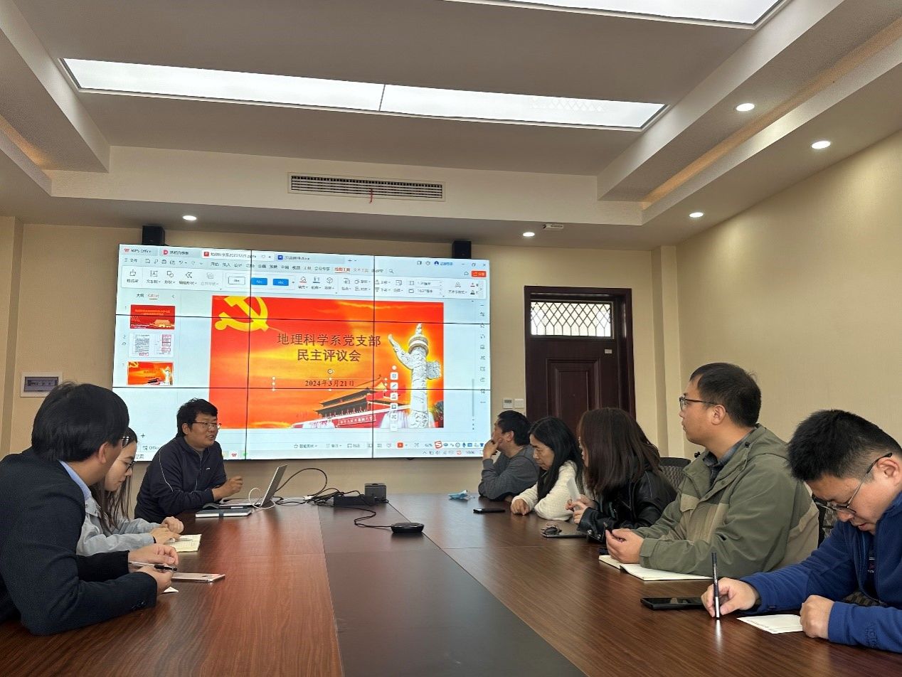 为深入学习贯彻习近平新时代中国特色社会主义思想,提升高质量党建引领高质量发展的支撑力,认真贯彻落实全面从严治党要求,切实发挥民主评议在党员教育管理和监督方面的作用,提高党性修养和思想政治素质,我院地理科学系党支部于3月21日在地学楼301会议室召开支部全体党员会议进行民主评议,并学习了《中国共产党党员网络行为规定》。会议由支部书记李开封主持。