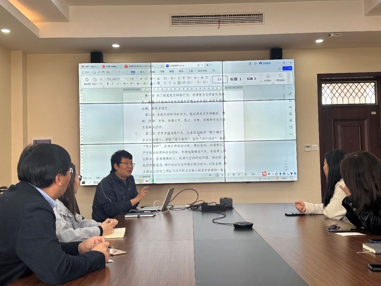 会议第二个阶段全体支部党员在李开封的带领下认真学习了《中国共产党党员网络行为规定》,并围绕实际生活中可能遇到的情况进行了说明和讲解。本次规定的学习有利于引导党员们始终坚持正确政治方向、舆论导向、价值取向,严守政治纪律和政治规矩,营造健康向上、风清气正的网络环境,推动形成良好网络生态,维护政治安全和意识形态安全,思想上政治上行动上自觉与党中央保持一致。