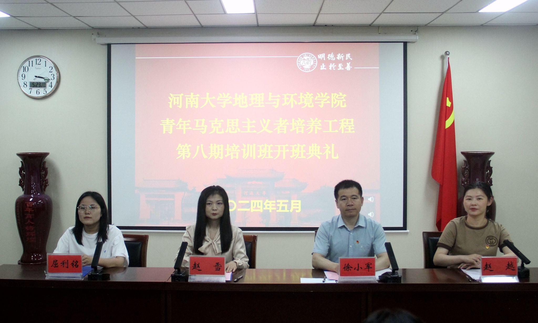 为深入学习贯彻习近平新时代中国特色社会主义思想和党的二十大精神,认真贯彻落实习近平总书记关于青年工作的重要思想,5月23日下午,地理与环境学院“青年马克思主义者培养工程”第八期培训班开班典礼在学院二楼学术报告厅顺利举行。校团委副书记赵雪,地理与环境学院党委副书记徐小军,2021级、2023级本科生辅导员屈利铭出席开班仪式。会议由学院团委书记赵越主持。本期培养对象包括学院团委学生会主席团成员、青年志愿者协会负责人、各年级骨干及各社团负责人等共170人。