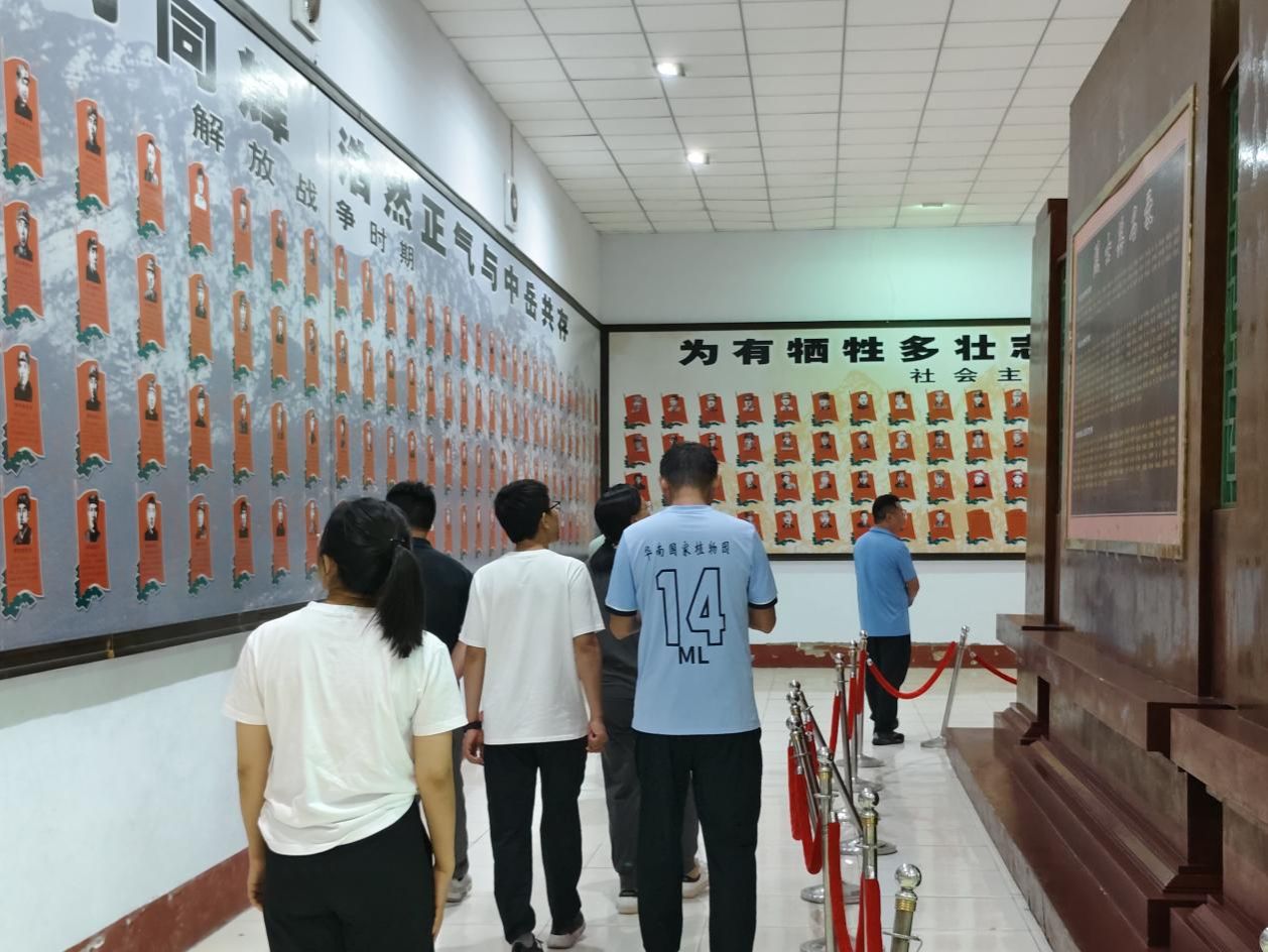 为迎接中国共产党成立103周年,贯彻落实习近平新时代中国特色社会主义思想,延续红色血脉、强化责任担当,7月1日下午,我院走进登封市革命烈士纪念馆,开展“传承红色基因,凝聚奋进力量”的主题活动,深入学习党史,缅怀革命先烈。我院嵩山实习队党员教师与学生代表参与学习本次党日活动。