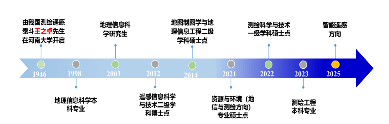 创立了测绘学科基础,20世纪90年代以来,在王家耀院士的带领下,先后建设了地图学与地理信息系统、遥感信息科学与技术博士学位授权点及测绘科学与技术一级学科硕士学位授权点。当前测绘科学与技术、遥感科学与技术均为河南省重点学科。