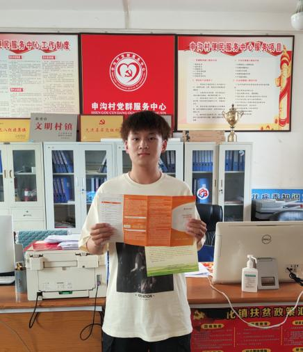 在8月14号的活动中,程嘉晖同学首先来到申沟村村委会,拜访了申沟村领导,并与村委会里负责村内大学生升学的领导进行了交流,向相关负责人详细讲解了国家资助政策,同时也与几位将要进入大学的准大学生在一起沟通交流。在讲解过程中,村委会负责人积极提问,了解更多更具体的国家资助政策,为以后向村内大学新生介绍国家资助政策做充分准备,在此次资助政策乡村行的过程中,团队成员深刻地感受到了国家资助政策对于乡村学子的重要性。在场陪同的几位新生在了解相关政策后也表示:国家对高校学生的资助政策立意深远,为许多学子家庭减负担,激励学生们勇攀知识的高峰,自己将更加认真地学习,报效祖国。