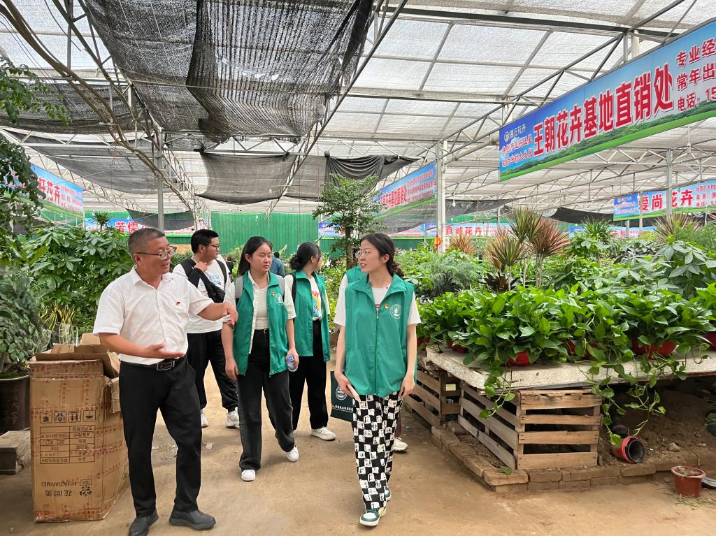 随后,在车集村党支部委员谢金民的带领下,实践团成员们实地参观了花卉产业园的建设发展情况。花卉基地负责人详细介绍了园区集智能化温控、浇水、施肥、修剪、病虫害处理等养殖操作技术,用通俗易懂的语言和生动有趣的案例向实践团成员们介绍了蝴蝶兰、红掌、凤梨等多种花卉养殖的情况,加深了实践团成员们对花卉养殖产业的认识。