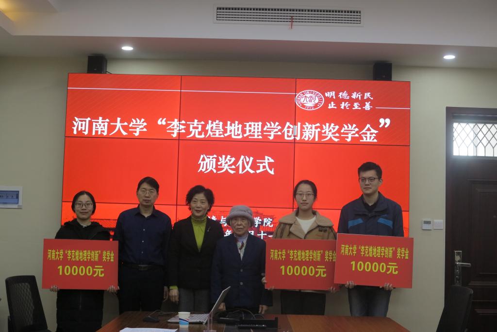 “李克煌地理学创新奖学金”颁奖仪式在环境与规划学院301会议室举行。李克煌夫人赵家珍女士、小说狂人
