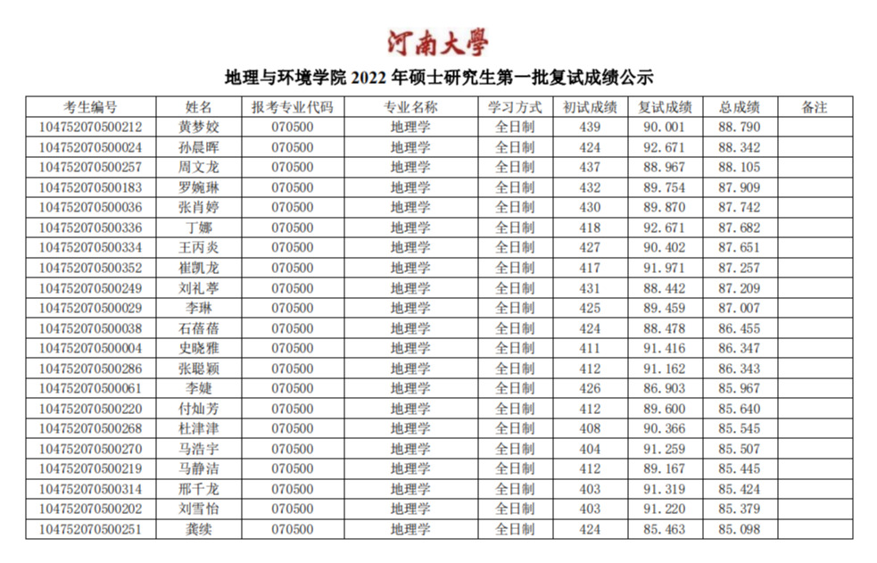 小说狂人 地理与环境学院2022年硕士研究生第一批复试成绩公示