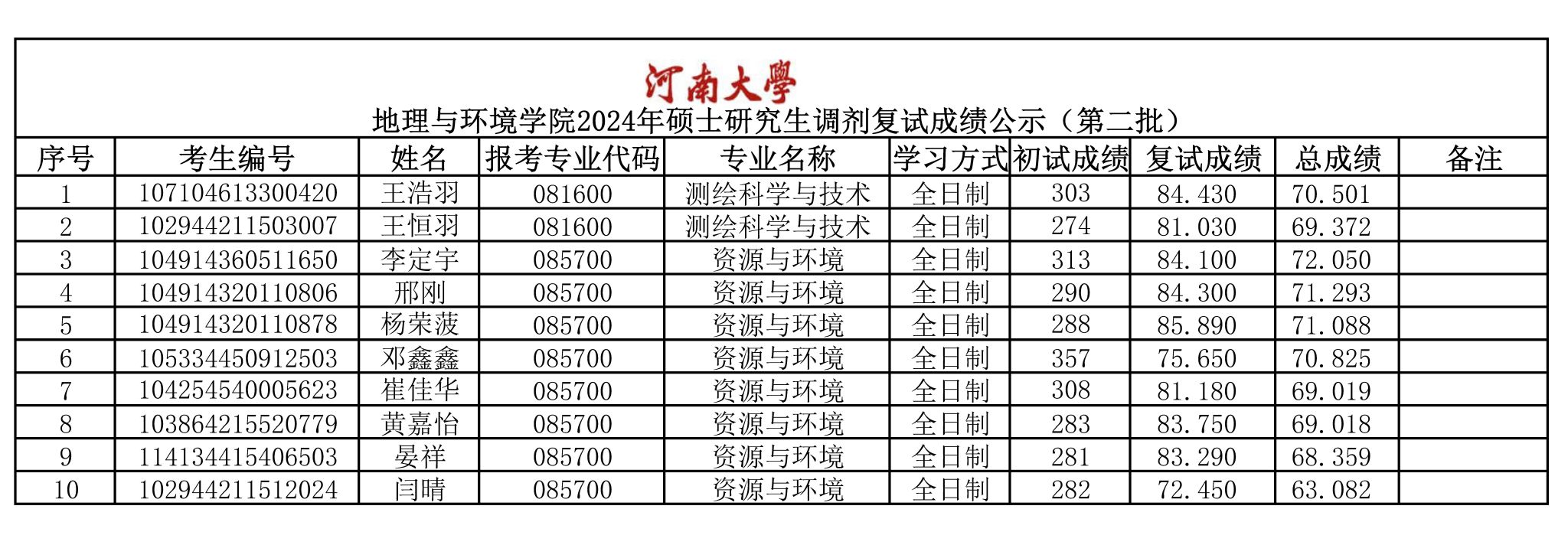 小说狂人 地理与环境学院2024年硕士研究生第二轮调剂复试成绩公示