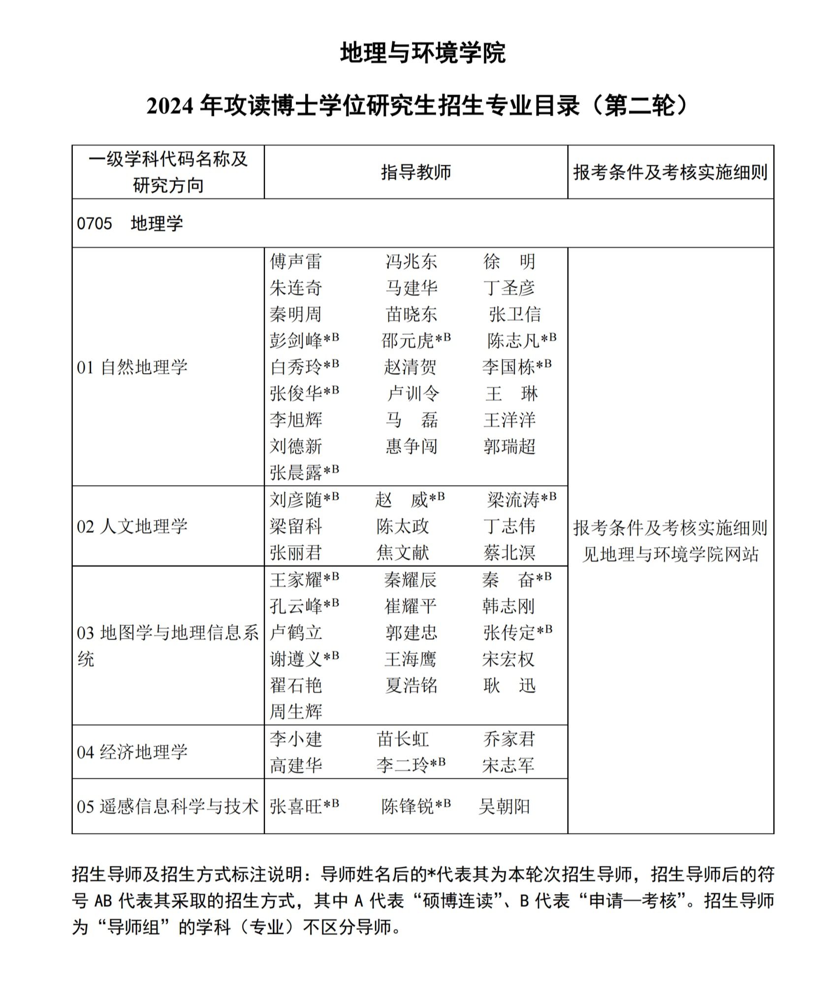 地理与环境学院2024年攻读博士学位研究生招生专业目录(第二轮)