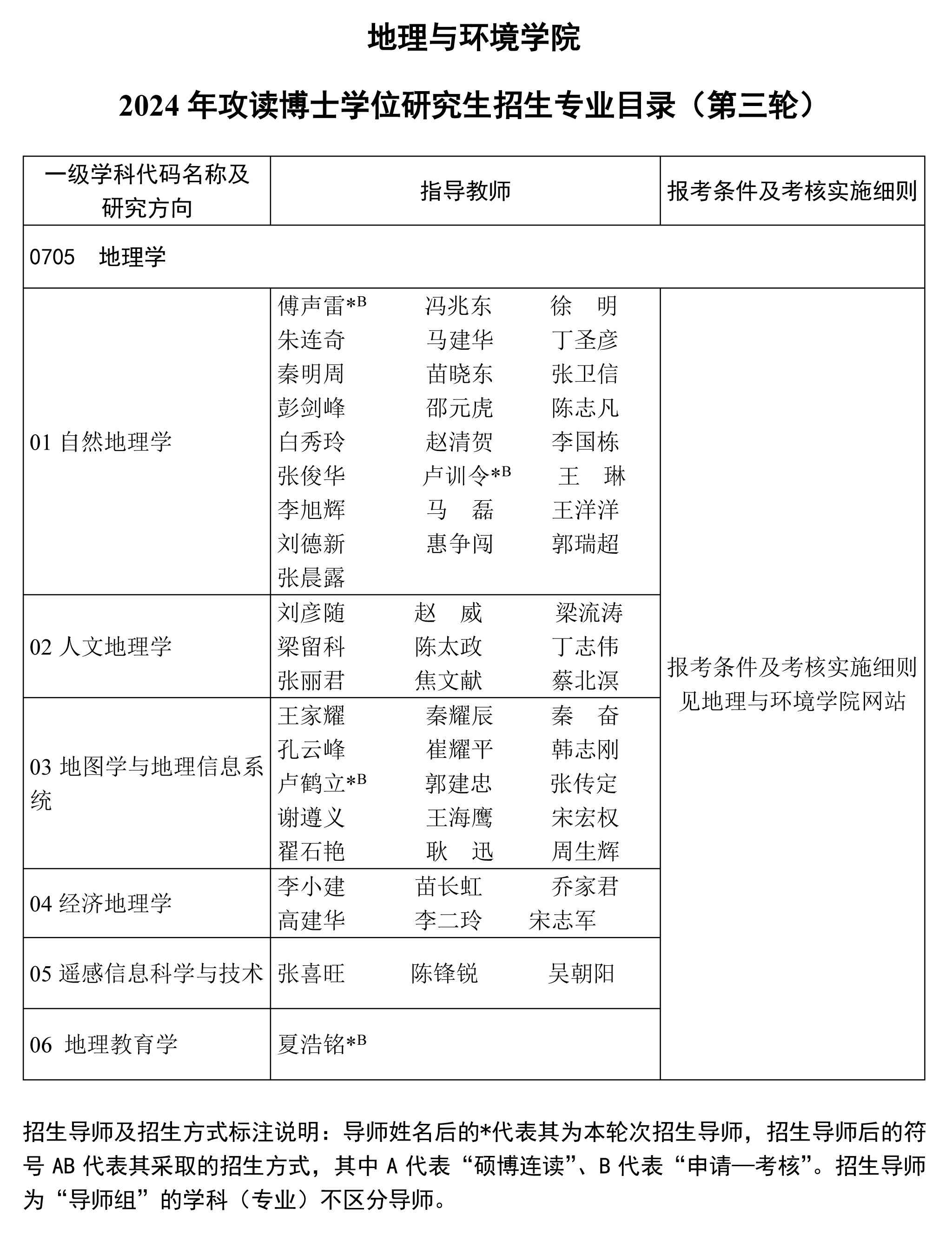 地理与环境学院2024年攻读博士学位研究生招生专业目录(第三轮)